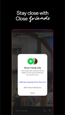 - Keep up with friends on the fly with Stories and Notes that disappear after 24 hours.