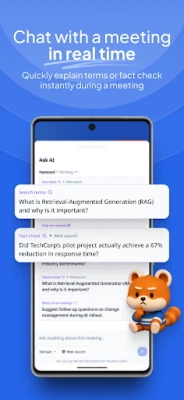 During your meeting, chat with AI in real-time. Instantly fact-check statements, define technical terms, or ask clarifying questions without interrupting the flow. It's like having a smart assistant sitting beside you, ready to explain acronyms, verify data, or provide context when you need it.