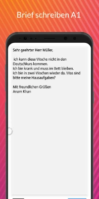Diese App hilft Ihnen, Ihr Wissen für die Prüfung zu erweitern. Es gibt viele Beispielbriefe zu verschiedenen Themen für den A1-Test. Am besten lernen Sie die Beispiele zur Vorbereitung auf die Prüfung kennen. Mit Hilfe dieser Anwendung Brief schreiben A1 ist es ganz einfach, einen Brief für die B1-Prüfung zu schreiben.