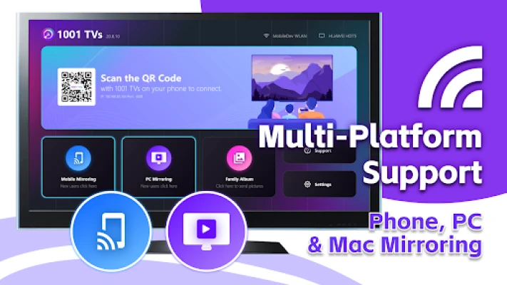 1001 TVs: Mirror screens from Android phones, iPhones, Windows, and Mac devices to your Android TV.