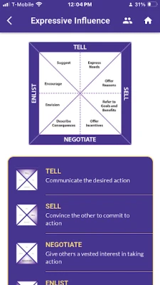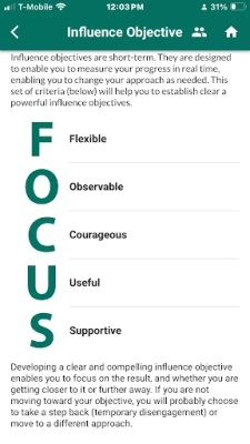 This app references the expressive and receptive influence tactics and behaviors from Barnes & Conti's popular Exercising Influence™ program. Noted author B. Kim Barnes describes and gives examples of all the influence behaviors. The app also includes a reference version of the Influence Framework that will help you plan your approach to any influence situation.