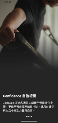 運動所帶來的內在自信是絕對真實的!Joshua 的冥想和專注力訓練課程,可促進身心連結,加強身體控制、意念專注及呼吸平衡。透過專業訓練提升身體的覺知力,將這樣的身體控制練習落實在美好且平衡的生活中。