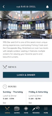 Visit your home away from home! Located in Chesapeake Beach, Maryland, just minutes away from DC, Annapolis, and Baltimore. Rod ‘N’ Reel Resort offers a wide variety of Dining, Entertainment, and Gaming Experiences. We have several dining options on property, Video Pull Tab Machines, Bingo, Fishing, Watersports, Concerts, and much more! You can even spend the night at The Hotel at Rod N Reel Resort where Hospitality meets the Bay. Must be 18 years of age or older to enter the Game Room Floors. Please play responsibly. 1-800-522-4700 or visit md.gamblinghelp.org.