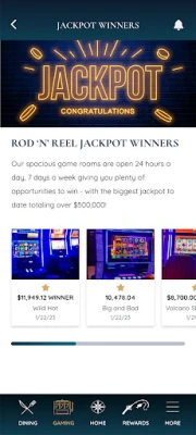 Features: ● See active and upcoming offers. ● Explore all Gaming and Bingo Promotions ● Book your next stay at The Hotel at Rod ‘N’ Reel Resort. ● See Upcoming Events and Purchase Tickets ● See Current Gaming Progressive Jackpots ● See Current Bingo Jackpots ● Access earned Rewards and Gaming Points anytime. ● Join Reel Rewards Club to earn Rewards when you Dine, Play and Stay! ● And much more.